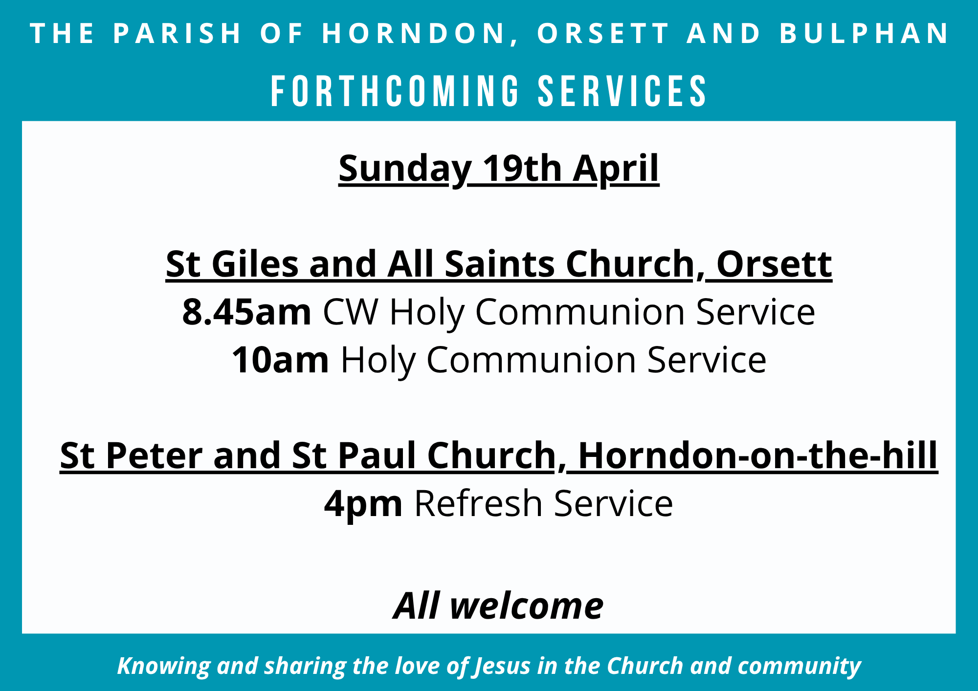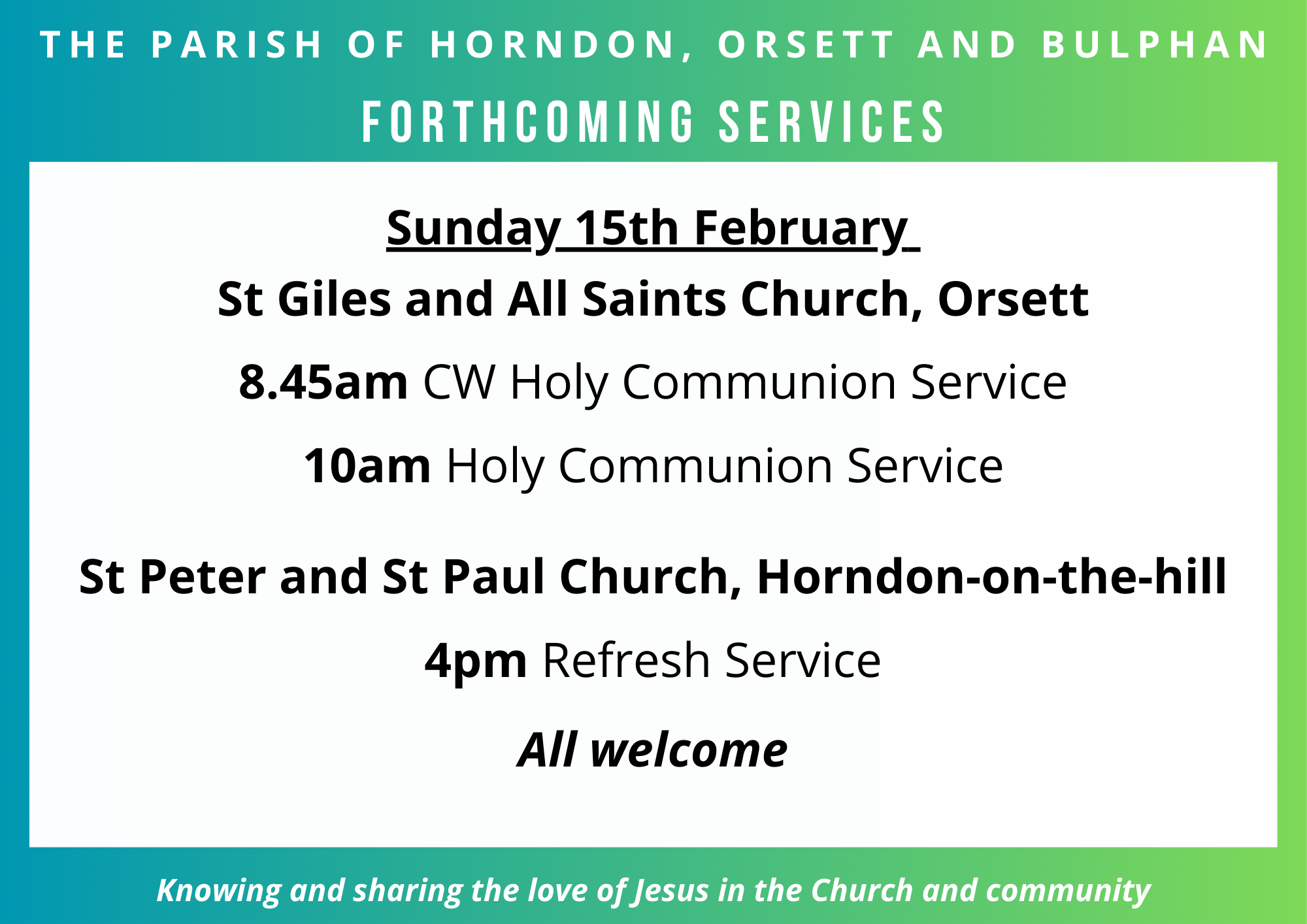 Welcome to the website of The Parish of Horndon, Orsett and Bulphan, three churches in the Church of England. Please take time to browse to find out more about who we are, what motivates us and what we do.